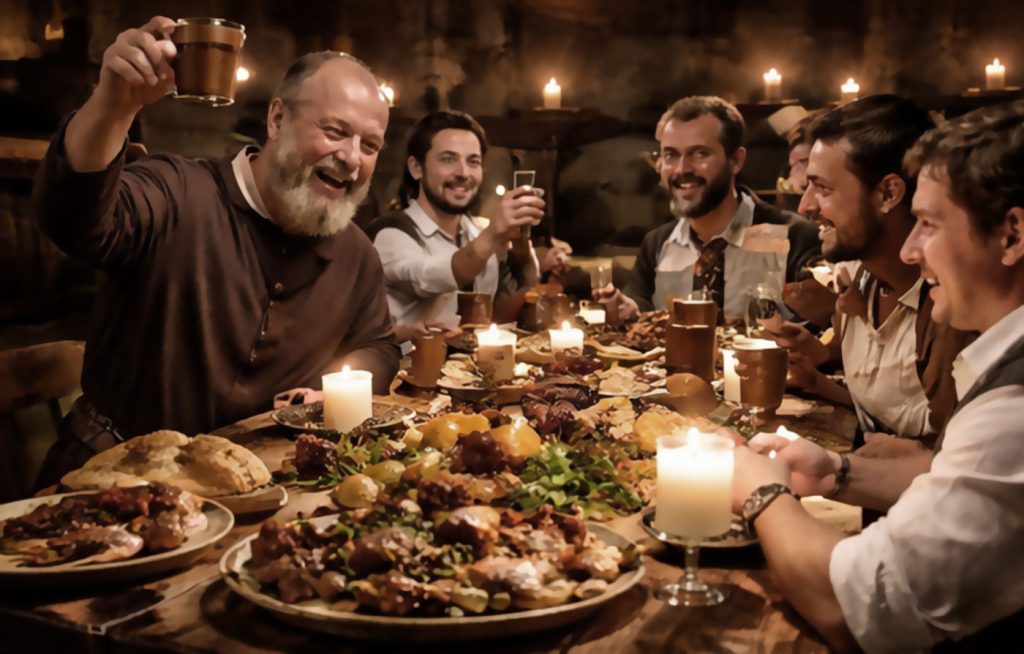 Der Abend beginnt um 18 Uhr mit der feierlichen Begrüßung und einem zünftigen Trunk. Anschließend folgt eine etwa 60-minütige historische Stadtführung, die Görlitz aus einer ganz besonderen Perspektive zeigt. Gegen 19.30 Uhr öffnet der Ritterkeller seine Pforten.